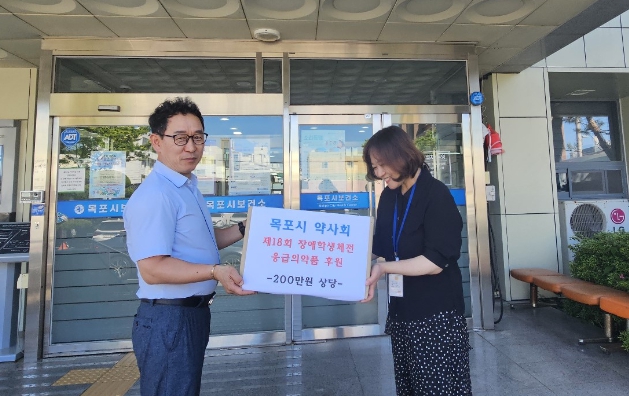목포시 약사회는 지난 14일부터 17일까지 총 9개 경기장에서 치러지고 있는 제53회 전국장애학생체전 선수와 관람객의 부상 등 만일의 사태에 대비하고 선수들이 역량을 마음껏 펼칠 수 있도록 필요한 응급의료 소모품을 후원했다.