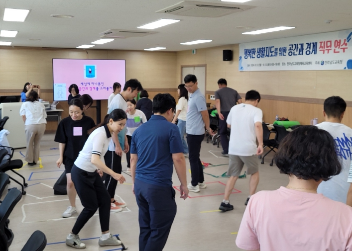 전라남도교육청은 여름방학 기간에 맞춰 ▲ 7월 19일 부터 20일 임프라브(즉흥연기) 15시간 ▲ 7월 29일 부터 8월 2일 갈등조정 30시간 ▲ 8월 6일 부터 7일 비폭력대화 15시간 ▲ 8월 12일 부터 13일 공간과 경계 15시간 등 행복한 생활지도를 위한 4종의 직무연수를 운영했다.