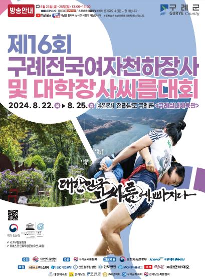 이번 대회에서도 구례군청 반달곰씨름단 8명의 선수가 출전해 여자씨름 발상지로서의 명성을 높일 계획이다.