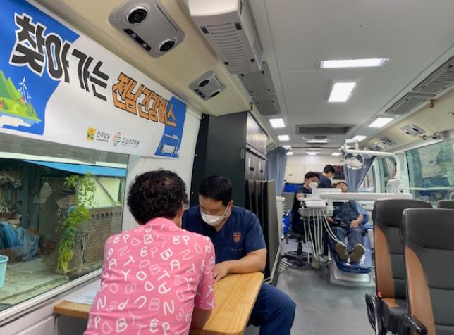 이날 전남건강버스 혈압·혈당, 콜레스테롤, 골밀도 검사, 건강상담 등의 의과 진료와 더불어 침, 뜸, 온열치료 등 한방진료, 구강검진과 틀니 관리 요령 등의 치과 진료를 통해 주민들에게 맞춤형 보건의료서비스를 제공했다.