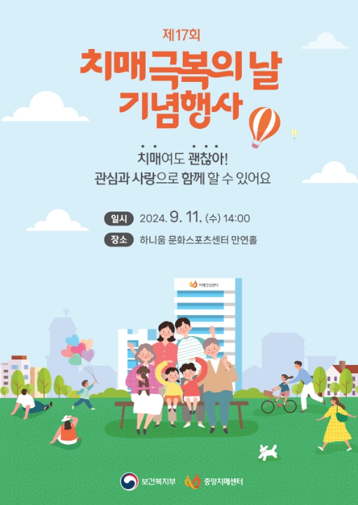 기념식은 밴드 ‘파람’의 축하공연, 개회사, 치매유공자 표창, 공모전 시상, 기념사, 환영사, 축사, 치매 극복의 날 기념 퍼포먼스 순으로 진행될 예정이다.