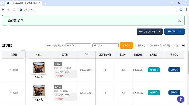 교과교육, 방과후학교, 학생오케스트라, 학생예술동아리 활동에 필요한 악기를 전라남도교육청 통합예약시스템에서 예약 신청해 이용할 수 있다.