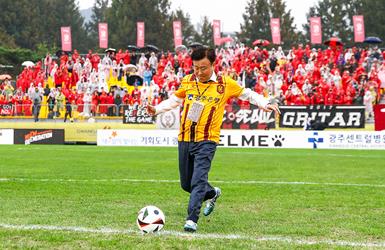 지난 6일 오후 광주월드컵경기장 축구전용구장에서 열린 이번 경기는 2024년 K리그1 폐막전으로, 정 시장은 광주FC의 마지막 승리를 응원하고 1만여 명의 관중들에게 섬박람회를 비롯한 올해 하반기 여수 축제를 홍보했다.