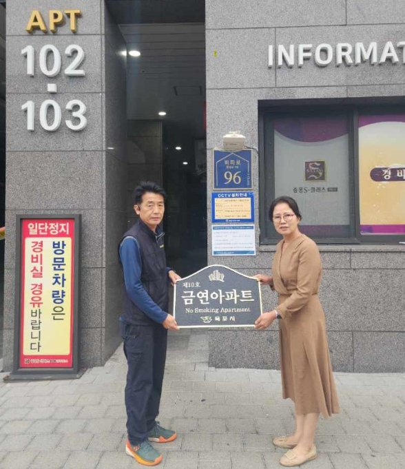 ‘금연아파트’는 목포시가 지역사회 내 금연 분위기를 조성하고 간접흡연 피해를 예방하고자 거주주민의 과반수 이상 동의할 때 지정하며, 금연구역 지정 및 입주민 대상 이동금연클리닉 운영 등 각종 금연 서비스가 제공된다.