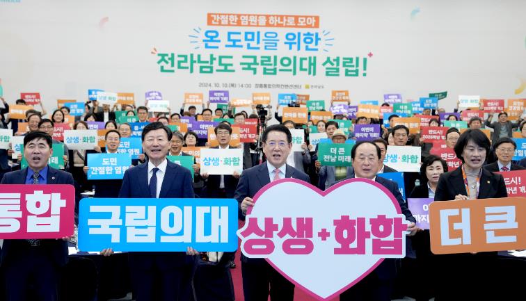 이어 “대학이 통합되더라도 도에서 지원하기로 한 글로컬 대학의 예산은 그대로 지원하고, 의대와 대학병원 설립 비용을 국가로부터 최대한 지원받고, 도에서도 충분한 지원을 하겠다”며 “전남도는 2026년을 사실상 의대설립의 마지막 기회로 생각하고, 양 대학과 잘 협력해 2026년 국립의대가 반드시 설립되도록 최선을 다하겠다”고 말했다.
