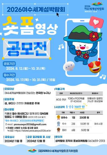 공모전 참가와 관련한 자세한 사항은 2026여수세계섬박람회 누리집에서 확인할 수 있으며, 섬박람회조직위 홍보마케팅팀으로 문의하면 된다.