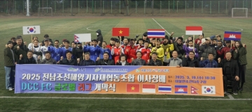 19일 전남조선해양기자재협동조합 이사장배 ‘대불산단복합문화센터(DCC) 글로벌 리그’가 대불인조잔디축구장에서 네팔FC팀과 태국FC팀의 개막경기로 출발을 알렸다.
