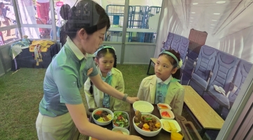 ‘2025 나주영산강축제장’에 마련된 ‘키자니아 직업체험관’ 승무원 체험을 하고 있는 아이들 모습.