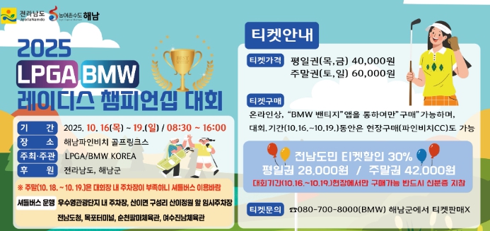 16일부터 19일까지 해남 파인비치 골프링크스에서 열리는 ‘LPGA BMW 레이디스 챔피언십’은 호남권 최초로 개최되는 LPGA 정규투어 대회다.
