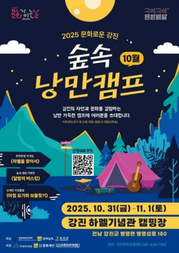 (재)강진군문화관광재단 김기태 대표이사는 “1차 캠프의 뜨거운 호응에 힘입어 2차 행사는 음악과 마술, 체험이 함께하는 더 풍성한 가을밤이 될 것”이라며 “강진의 자연 속에서 힐링과 문화를 함께 즐길 수 있길 바란다”고 말했다.