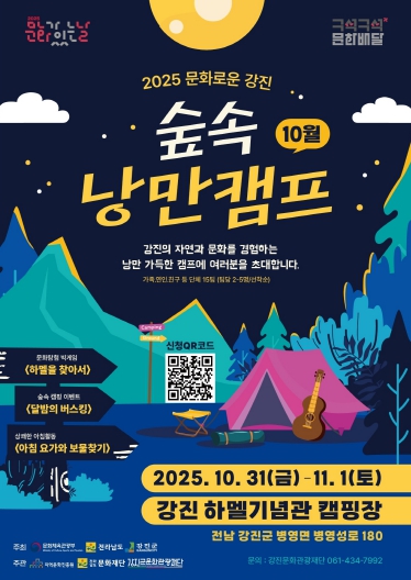 문화체육관광부가 주최하고 지역문화진흥원이 주관하는 이번 행사는 가족·연인·친구 단위 참가자를 대상으로 강진의 자연과 문화, 역사를 함께 체험하는 1박 2일 힐링 문화캠프다.