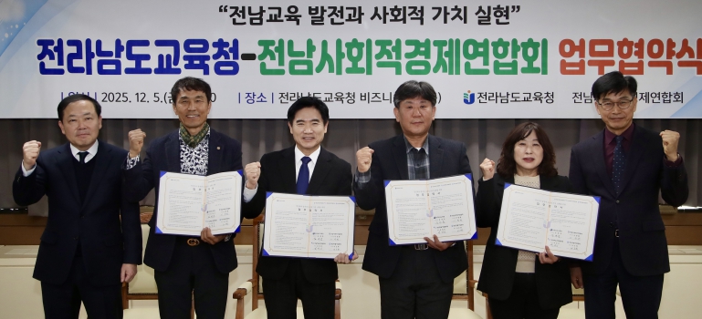 전남교육청은 이번 협약을 계기로 지역에서 활동하는 전남사회적경제연합회가 교육의 동반자로서 학생들이 지역에서 배우고 성장할 수 있는 협력 모델이 되기를 기대한다.