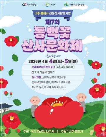 2일 나주시에 따르면 국가유산청과 나주시가 주최하고 대한불교조계종 불회사(주지 철인스님)가 주관하는 ‘2026년 전통산사 국가유산 활용사업 제7회 동백꽃 산사문화제’가 오는 4월 4일부터 5일까지 이틀간 나주 불회사 일원에서 열린다.