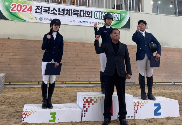 전라남도 승마협회에서 주관한‘2024년도 유소년 승마대회 및 전남소년체전 선발전’은 지난 3월 22일부터 2일간 전라북도 장수군 장수승마장에서 진행되었으며, 김지연 학생과 박의진 학생이 유소년부 장애물30cm, 70cm 종목에서 각각 1위의 좋은 성적을 거두었다.